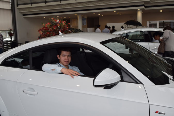 この人は、当校卒業生です!YANASEバイエルンモーターズ福岡に入社して7年目で、もうベテランです!皆さん、企業見学会初の輸入車ディーラーとあってしっかり見学していました。最後は店舗前で記念撮影をさせていただきました。YANASEグループ担当者の皆様、本日は貴重な時間をありがとうございました!明日は、スペシャルオープンキャンパス第4弾YANASEグループ様です!!お楽しみに!!