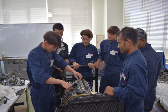 高校生はもちろん留学生にとっても実際のエンジンにふれることは初めてです!