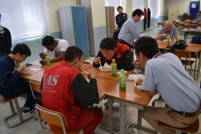 食事をしながら九州日産㈱スタッフの方々や学生内定者、私たち教員と色々と
