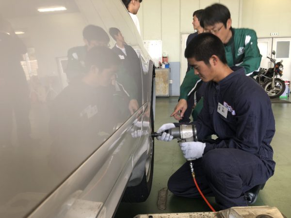 締めるかなど丁寧に指導していただきました。こういった体験実習は福岡トヨペット㈱様